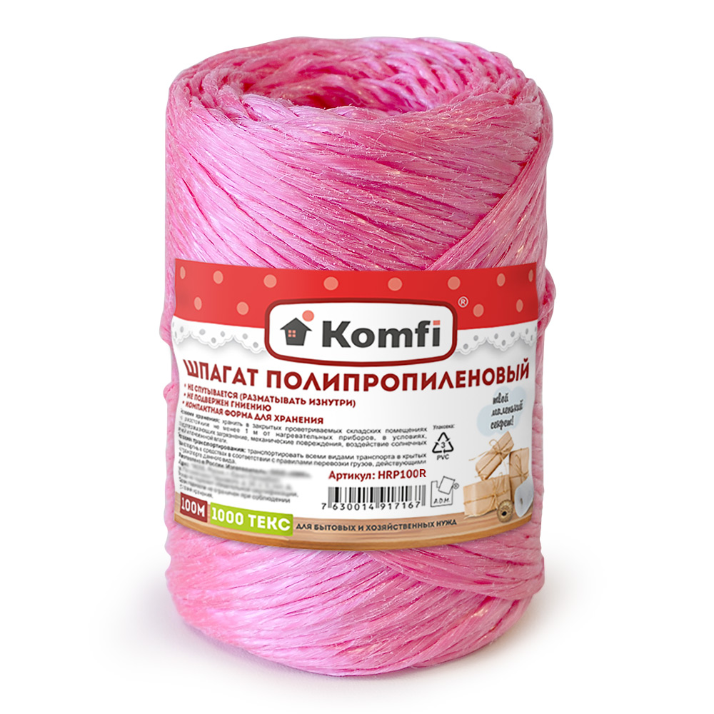 Шпагат полипропиленовый, 100 м, 1000 текс, красный, Komfi