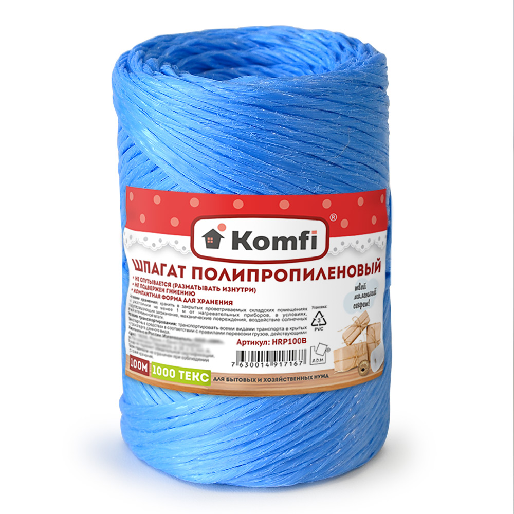 Шпагат полипропиленовый, 100 м, 1000 текс, синий, Komfi