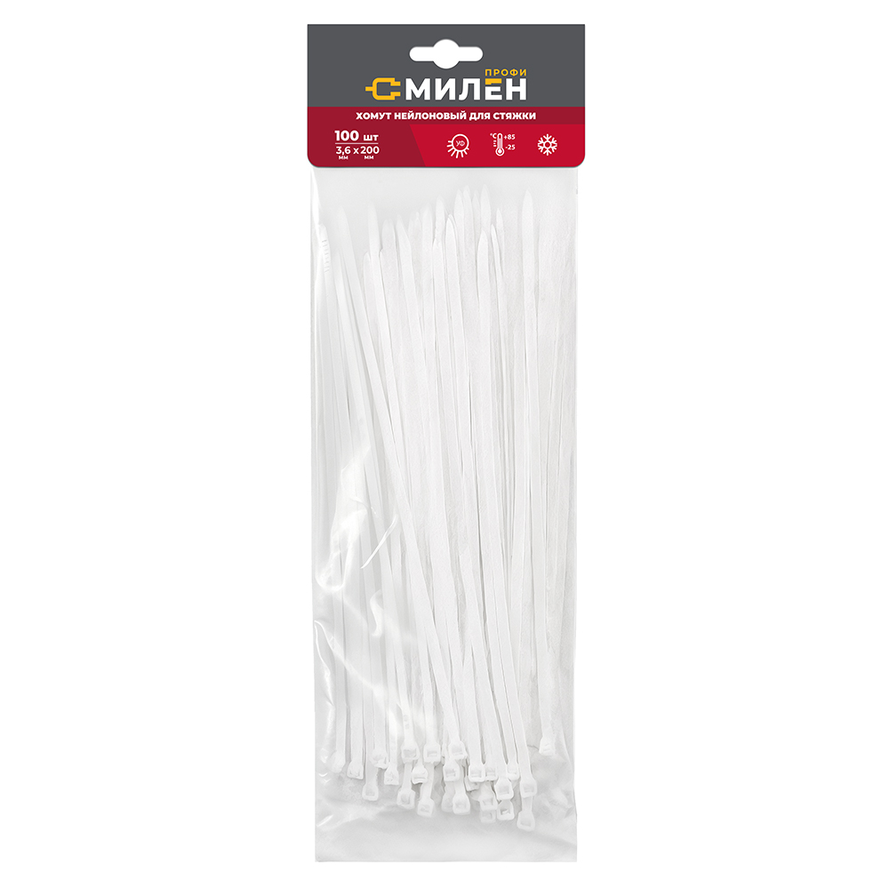 Нейлоновые хомуты для стяжки Милен, белые, 3,6*200 мм, 100 шт