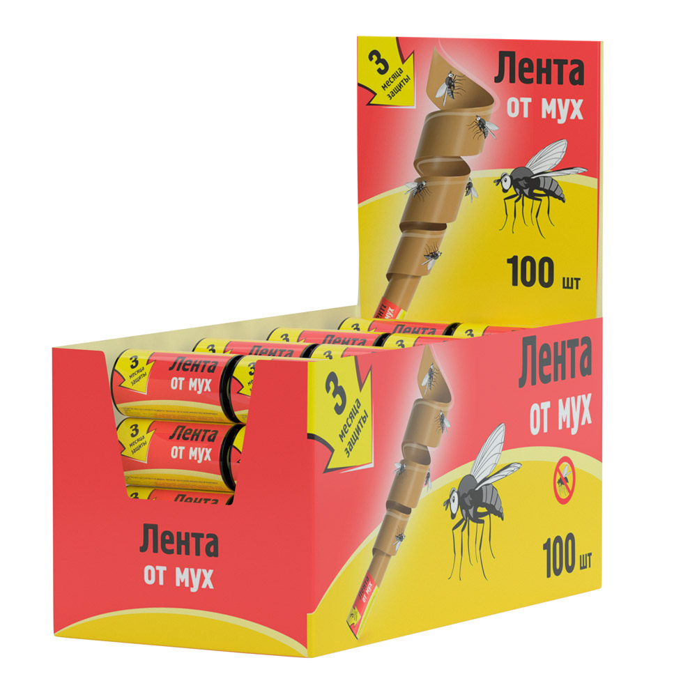 Лента от мух, в шоубоксе, 100 шт., NoName