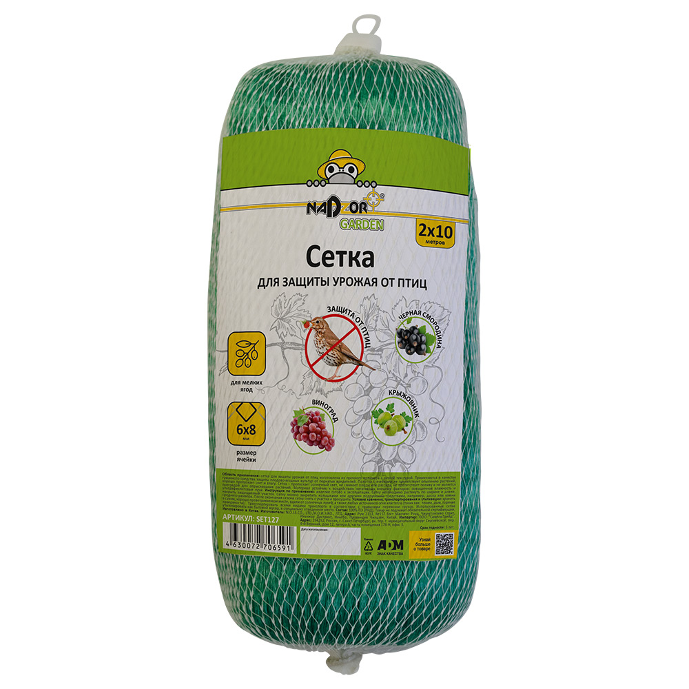 Сетка для защиты урожая от птиц (6*8мм), 2*10м. Nadzor Garden