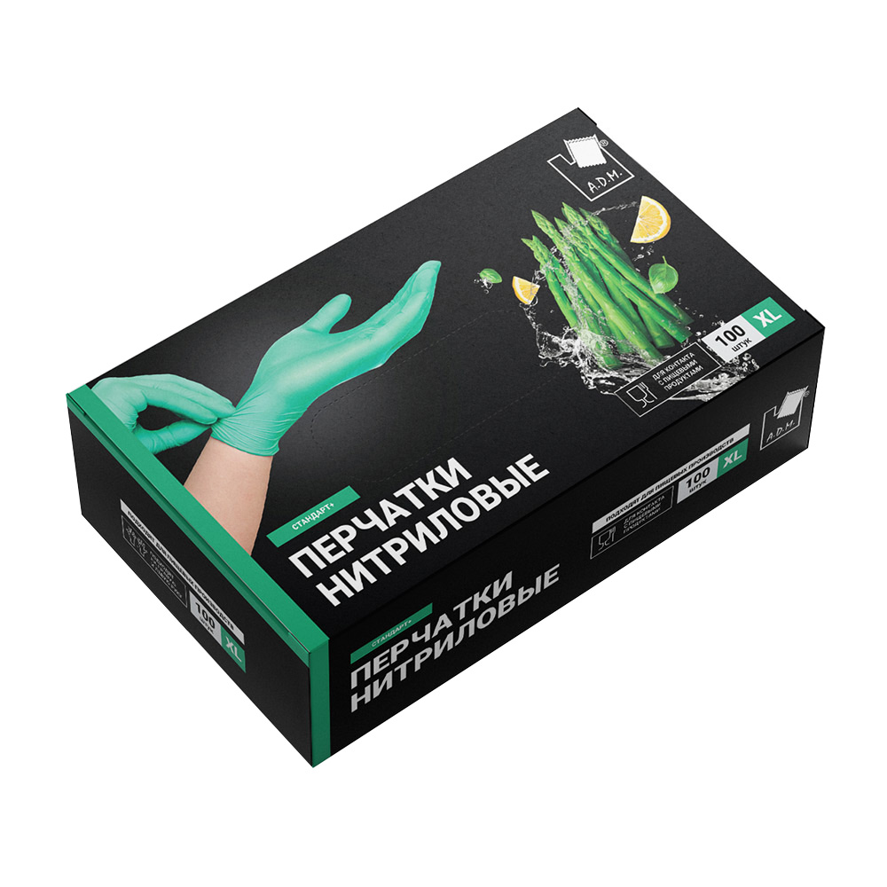 Перчатки нитриловые стандарт+ (8,8 гр), мятные, XL, 100 шт/уп., ADM