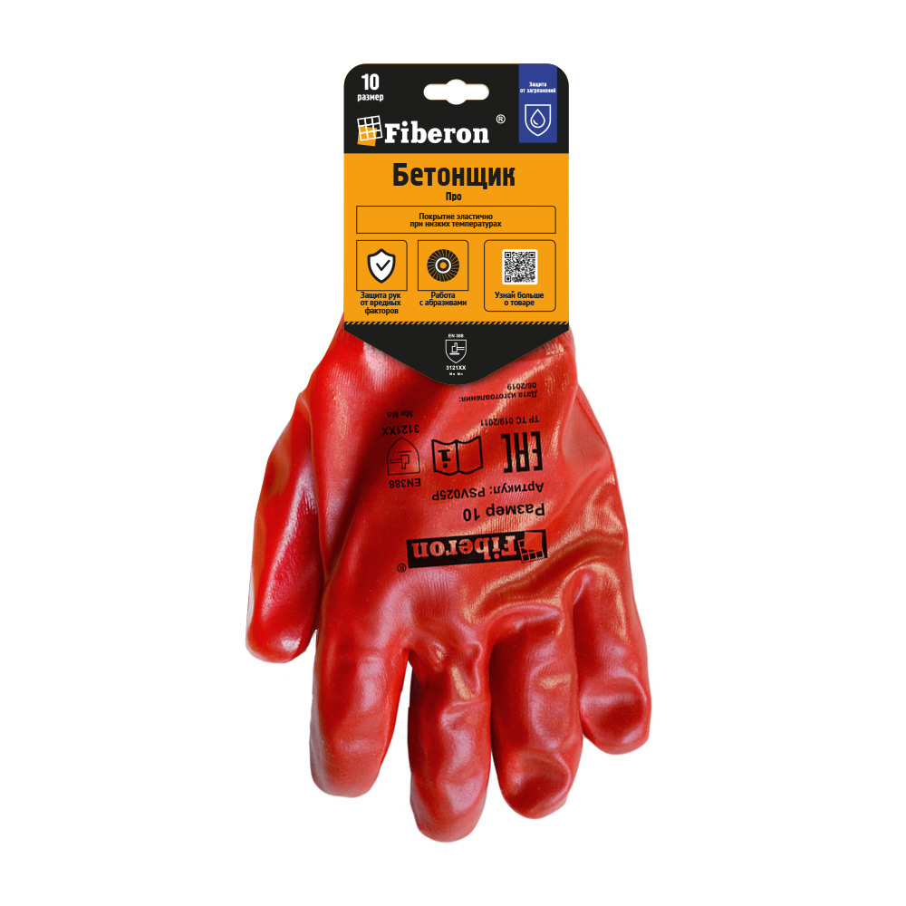 Перчатки "БЕТОНЩИК ПРО: стойкость к загрязнениям", полиэстер+хлопок, ПВХ покрытие, в и/у, 10(XL), Fiberon
