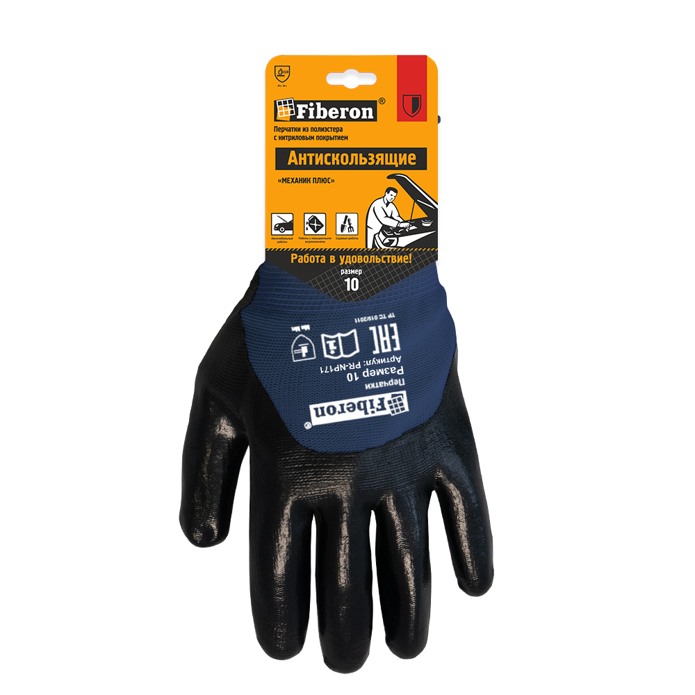 Полиэстеровые перчатки с нитриловым покрытием Fiberon применяются для работ с загрязненными и замасленными поверхностями: автомобильные работы, работа с инструментами и механизмами, садовые работы.