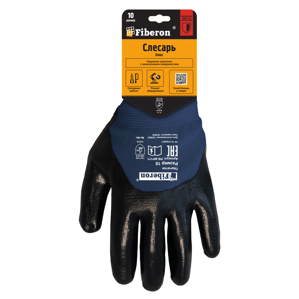 Перчатки "СЛЕСАРЬ ПЛЮС: антискользящие", полиэстер, нитриловое покрытие, в и/у, 10(XL), Fiberon