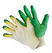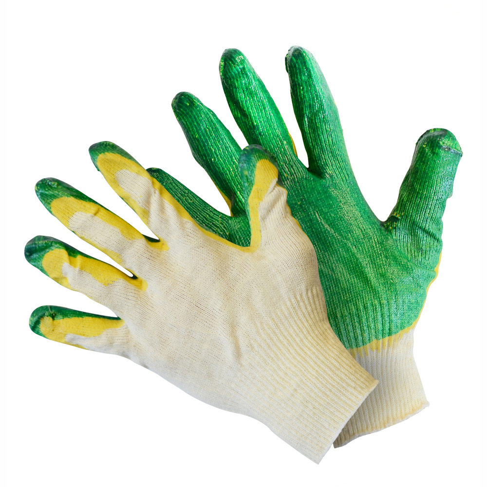 Перчатки изготовлены из хлопчатобумажный пряжи, ладонная часть покрыта двумя слоями латекса.