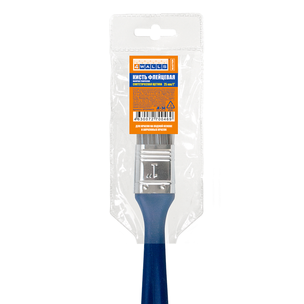 Кисть флейцевая, 25 мм, синтетическая щетина, пластмассовая ручка, 4Walls Master