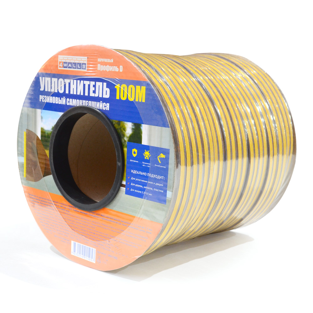 Изготовлен из вспененной EPDM резины, полиэстеровой ленты с клеевым слоем, армированных внутренних нитей из стекловолокна и защитного лайнера из специальной бумаги. Рекомендуем использовать D профиль для щелей от 3,5 до 5,5мм. Отличная защита помещения от проникновения ветра, пыли, насекомых, дыма, шума и сквозняков. Уплотнитель подходит для дерева, металла и пластика.